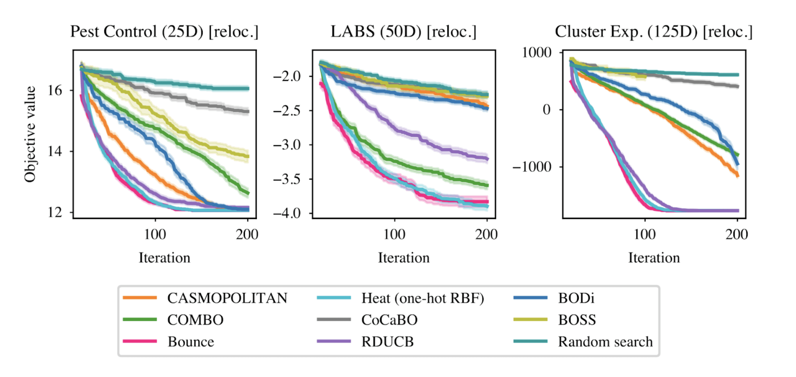 • Robustness without bias: Many existing algorithms carry implicit assumptions: for instance, expecting the optimal design to sit at the "edges" of the search space or assuming it must contain identical categories. These biases can lead to failure when the true optimum doesn't fit the expected pattern. Heat kernels, by contrast, are remarkably stable; they provide a neutral, flexible framework that matches the reliability of the best specialized methods regardless of how the optimal design is structured.
